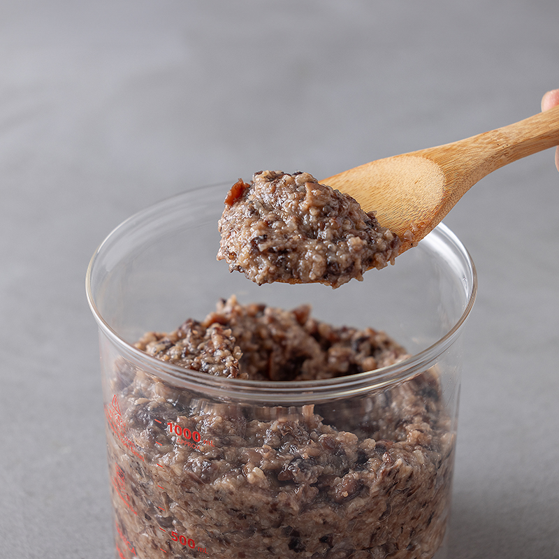 芳醇な香りと大粒で漆黒の色つやのある丹波種黒大豆の水煮を使用。米麹となじみやすいように、やわらかく炊き上げています。