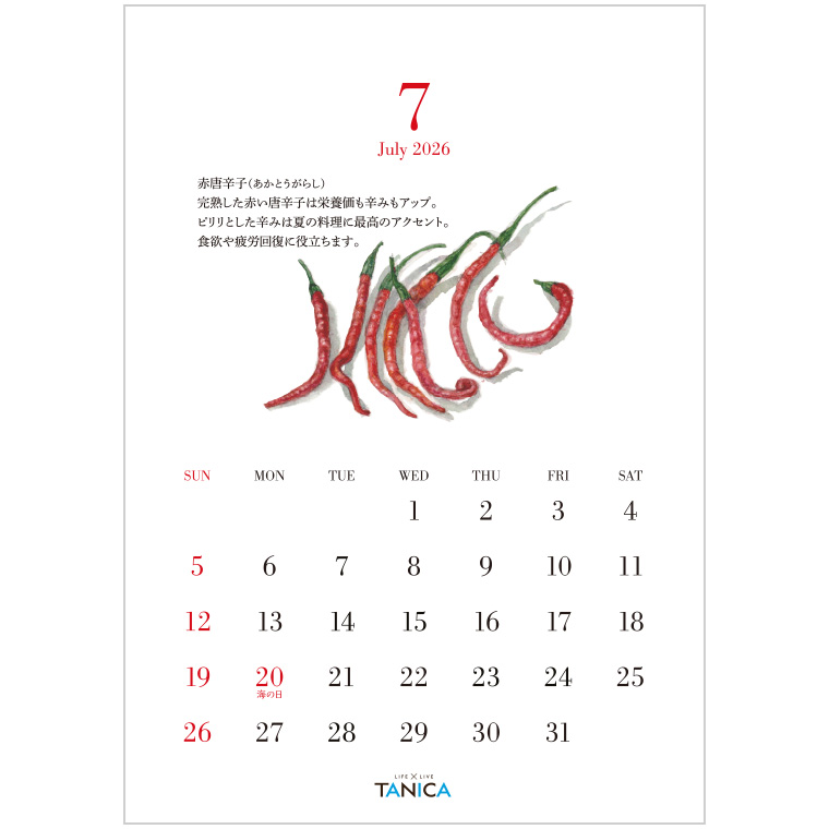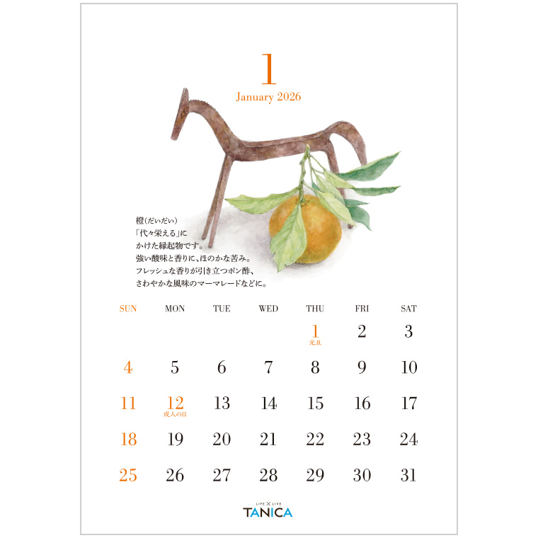 TANICAカレンダーは、旬の食材が描かれた落ち着きのある卓上カレンダーです。