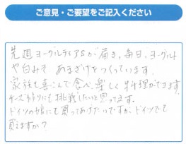 実際にヨーグルティアSやABCT種菌をご利用いただいたお客様から感想を掲載しております。