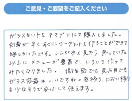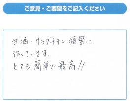 娘がこちらの商品を使っていて、帰省のたび貸してもらい玉ねぎ麹、出汁麹等作って料理に活かしています。いままでは炊飯器で甘酒を作っていました。発酵食品が好きなので、手軽に調理が楽しめます。容器がガラスで気に入っています。40代 女性