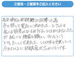 実際にヨーグルティアSやABCT種菌をご利用いただいたお客様から感想を掲載しております。