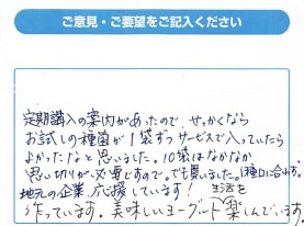 実際にヨーグルティアSやABCT種菌をご利用いただいたお客様から感想を掲載しております。
