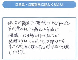 インスタで拝見してから気になっておりました。今まで麹作りを日にちをかけて作っていましたが、これで1日で出来るので使うのが楽しみです。60代 女性