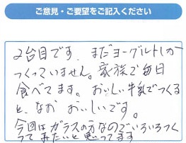実際にヨーグルティアSやABCT種菌をご利用いただいたお客様から感想を掲載しております。