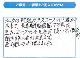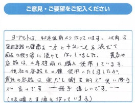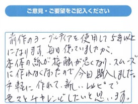 実際にヨーグルティアSやABCT種菌をご利用いただいたお客様から感想を掲載しております。