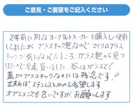 以前は牛乳パックで作るヨーグルトメーカーを使用していました。容器の滅菌処理をしなくてもよかったので楽だったのですが、最後...