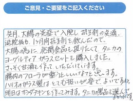 実際にヨーグルティアSやABCT種菌をご利用いただいたお客様から感想を掲載しております。