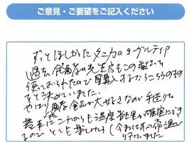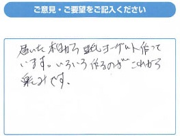 レシピ本の温度と時間早見表は、一目で見て分かりやすいので良かった。シールやマグネットになっていれば冷蔵庫などに貼ってすぐ確認出来て良いのではと思った。レシピ本を出すのも面倒な時があるので。玉ねぎ麹や麹納豆、チョコ麹など新しい麹レシピなどもレシピ本に載せて欲しいなと思いました。インスタとかを見ればいいんですけど、アナログ人間にはレシピ本の方がすぐ見れるので。60代 女性