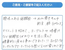 実際にヨーグルティアSやABCT種菌をご利用いただいたお客様から感想を掲載しております。